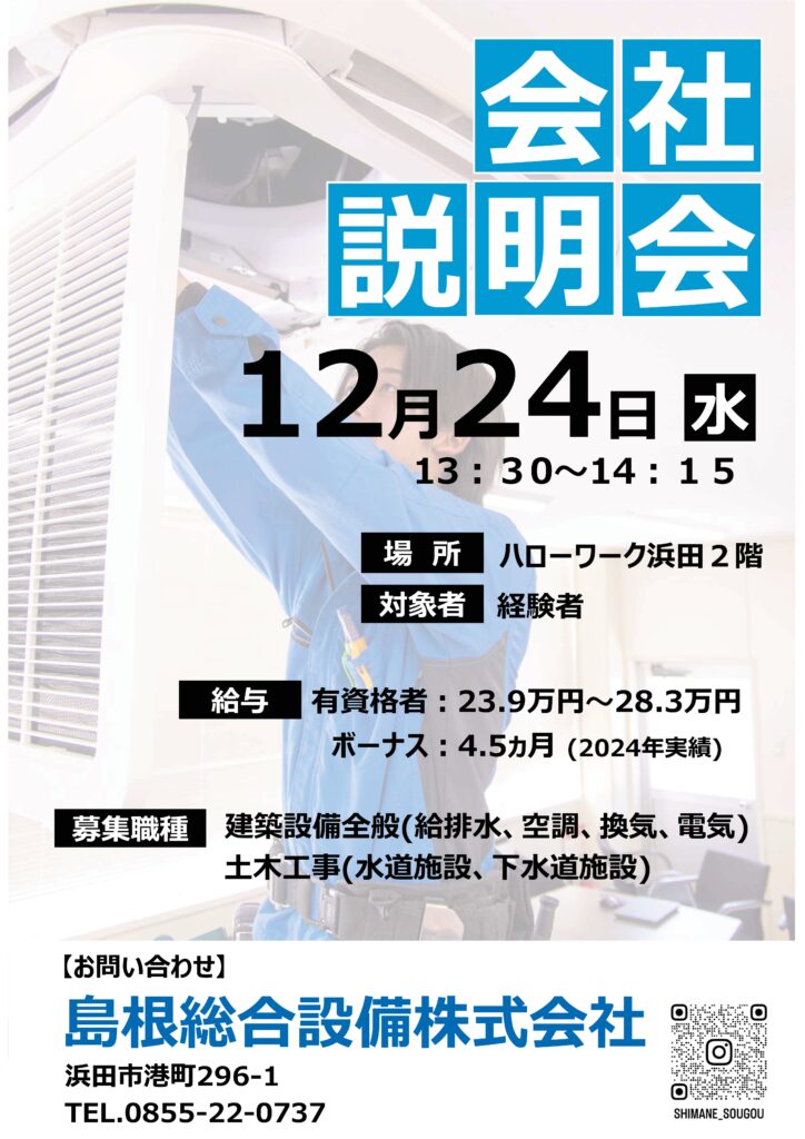 ハローワーク浜田にて、当社の会社説明会を開催いたします📣